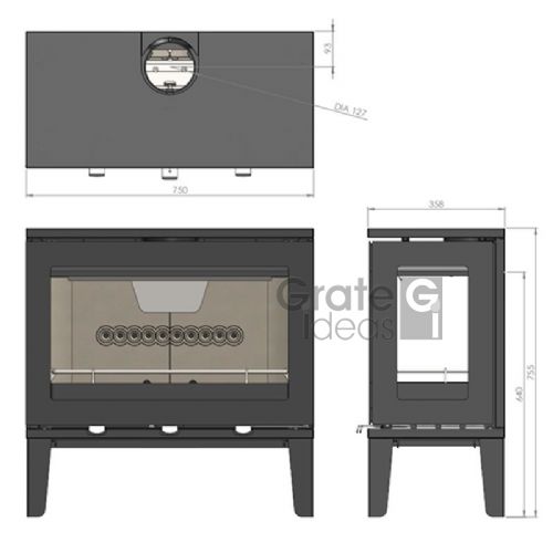 • Top and rear flue connection provides more flexibility when installing the stove