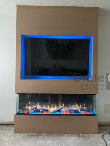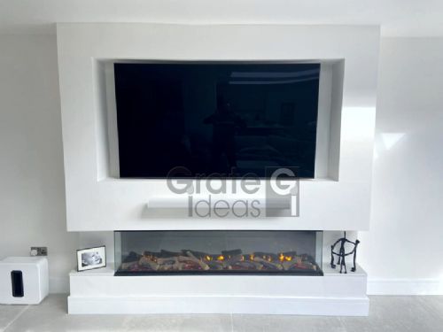 can be customised with additional storage such as shelving or cupboards as well as lighting to complement your chosen fire and room decor.