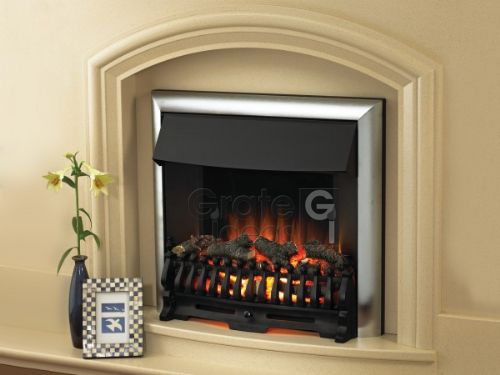 Manual control with LED flame effect Concealed 1000W/2000W thermostatically controlled fan heater Choice of fuel effects: Coals, White Pebbles or Glass Beads as standard with Twigs & Embers as cost option Choice of colour finish: Silver, Black or Brass Designed to be inset into a standard opening 16" x 22" /41cm x 56cm with 40mm inset Full spacer available This product is only suitable for well insulated spaces or occasional use