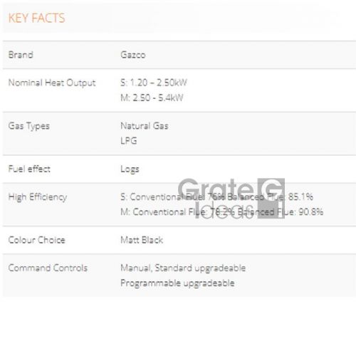 Operation is simple thanks to the easy ignition and manual control which lets you adjust flame height and heat output. Choose Gazco’s Command upgradeable remote control and you can adjust the flames and heat from your armchair. Alternatively, opt for the Programmable upgradeable remote control to set the stove to switch itself on and off and heat the room to the temperature you select.