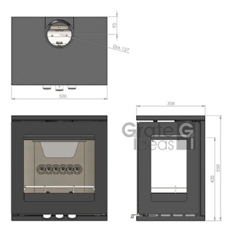 • Top and rear flue connection provides more flexibility when installing the stove