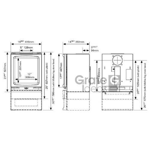 All models in the Vogue range benefit from a host of mounting choices including either a Plinth, Midline log store or one of the many Stovax stove benches.