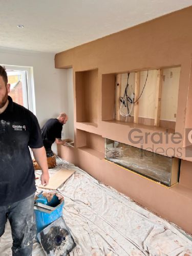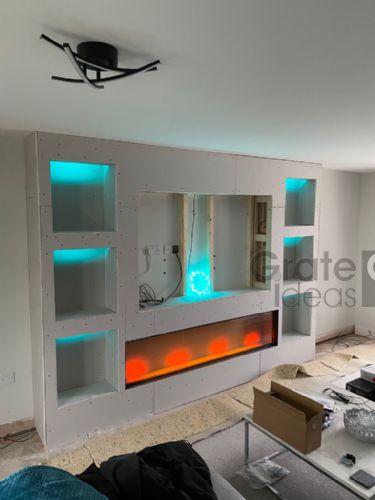 can be customised with additional storage such as shelving or cupboards as well as lighting to complement your chosen fire and room decor.