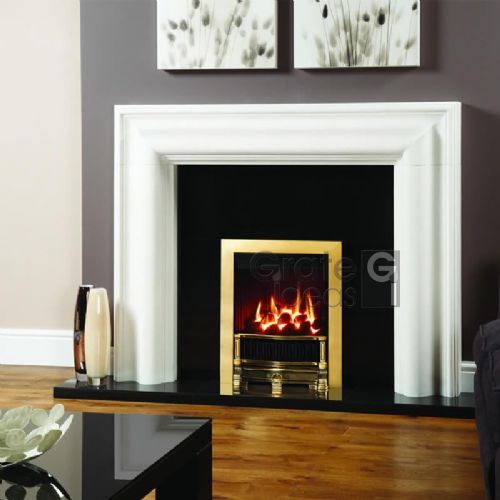 The Grafton stone mantel is available in a choice of Natural Limestone and Antique White Marble.